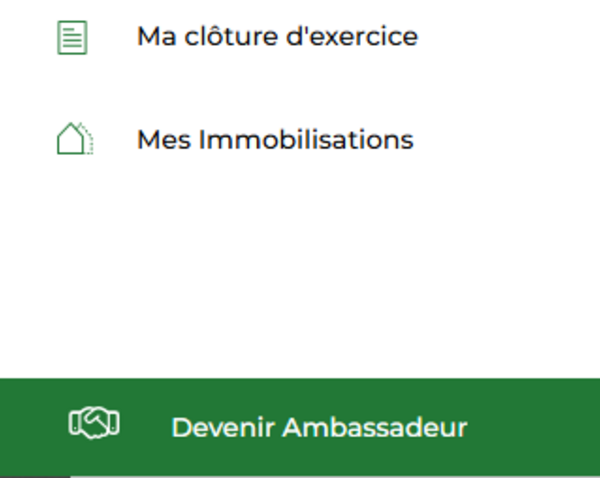 Dans votre espace, lorsque vous êtes connecté à l'application, accédez à "Devenir Ambassadeur" dans la marge à gauche.